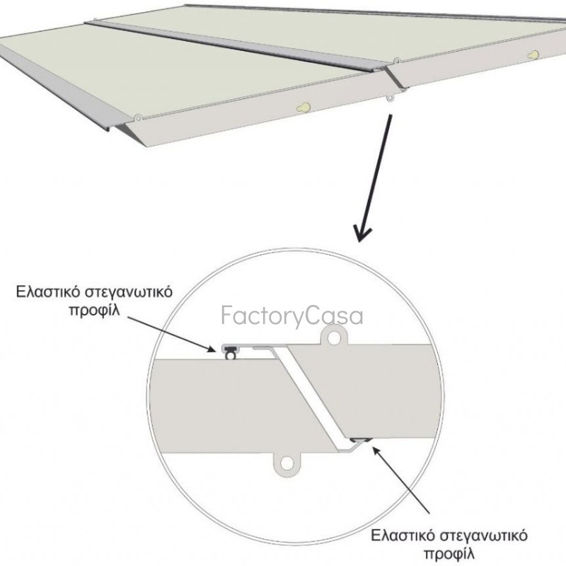 - Eιδικά προφίλ αλουμινίου ( στα πάνελ ) με λάστιχα, για το “κλείσιμο” της οροφής.