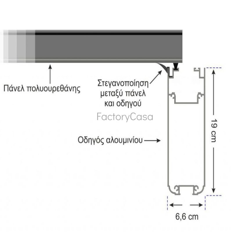 - Οδηγοί αλουμινίου διατομής 6,6cm x 19cm.