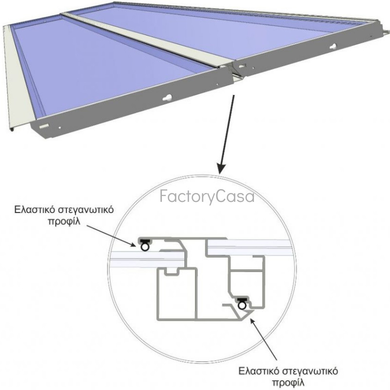 - Eιδικά προφίλ αλουμινίου ( στα πάνελ γυαλιού ) με λάστιχα, για το “κλείσιμο” της οροφής.