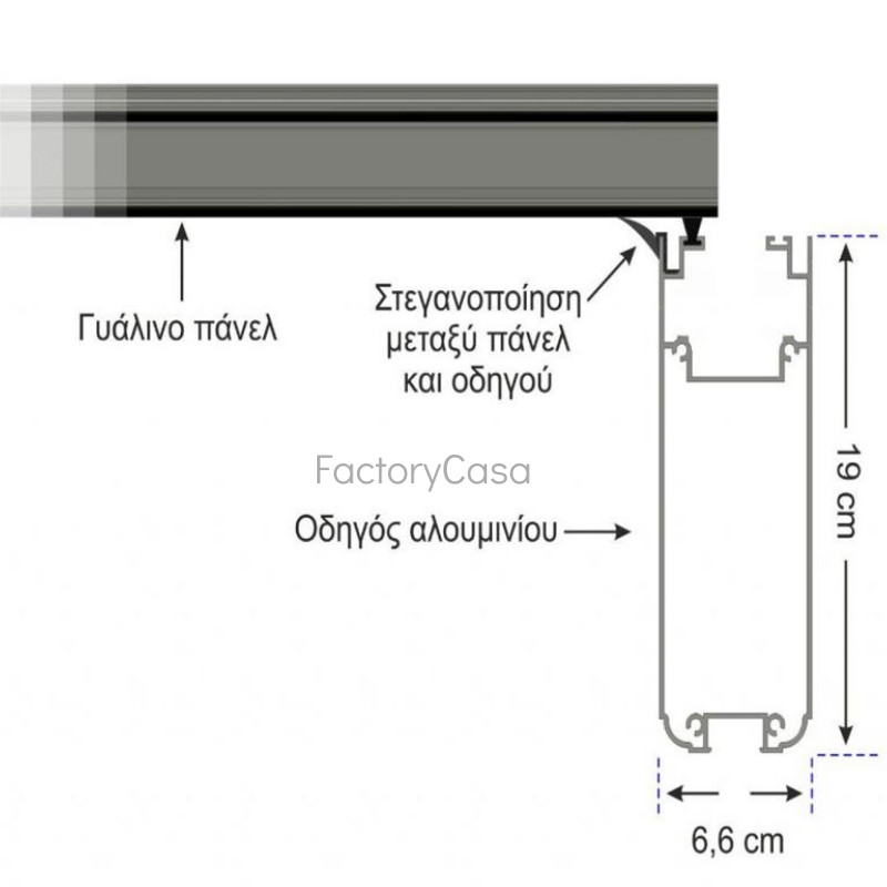 - Οδηγοί αλουμινίου διατομής 6,6cm x 19cm.