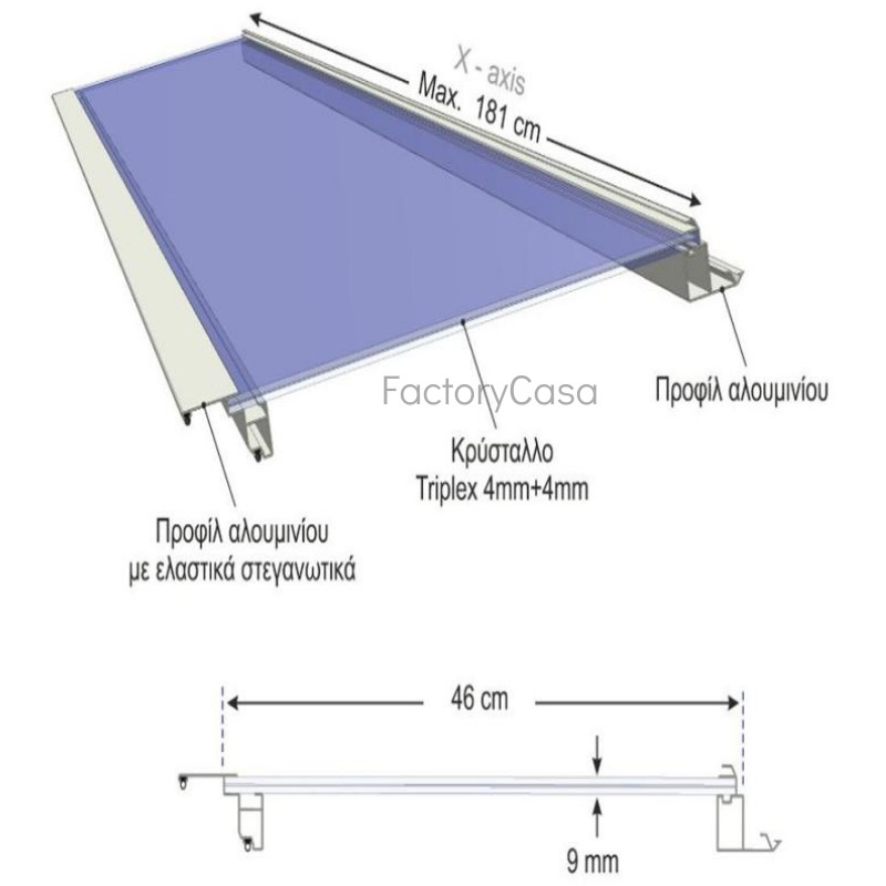 - Triplex υαλοπίνακες πάχους 4+4mm ( κάλυψη πάνελ γυαλιού ~ 46cm )