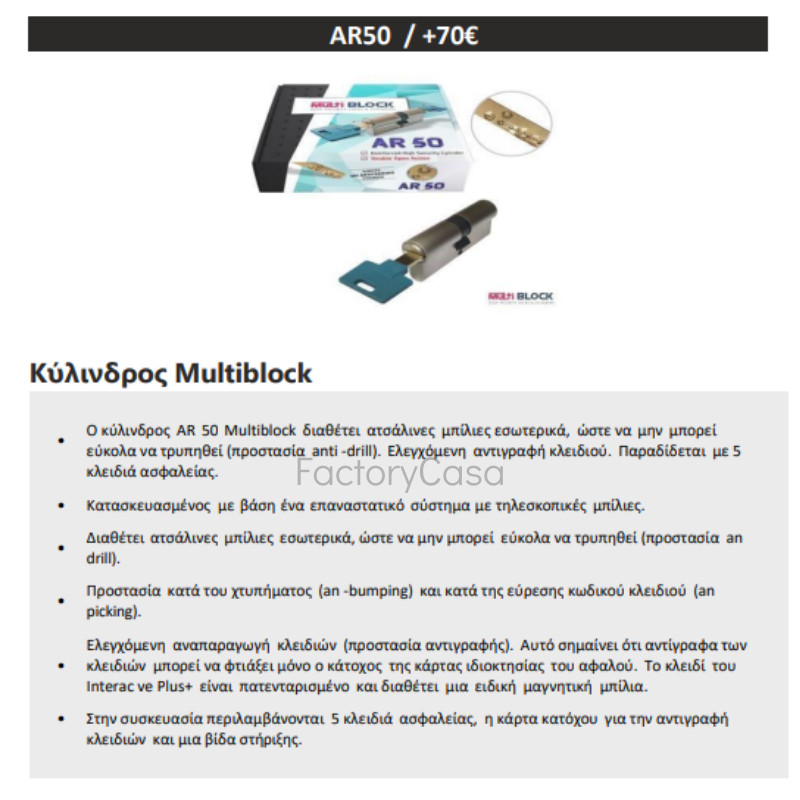 - Διπλή κλειδαριά με extra 1 πύρο : +180,00€